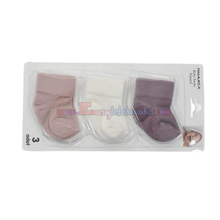 Pamukca 0-3 Ay 3'Lü Bebek Çorap Krem Mürdüm