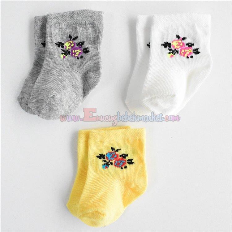 Pandora 0-3 Ay Bebek Çorap Çiçekli Gri Sarı