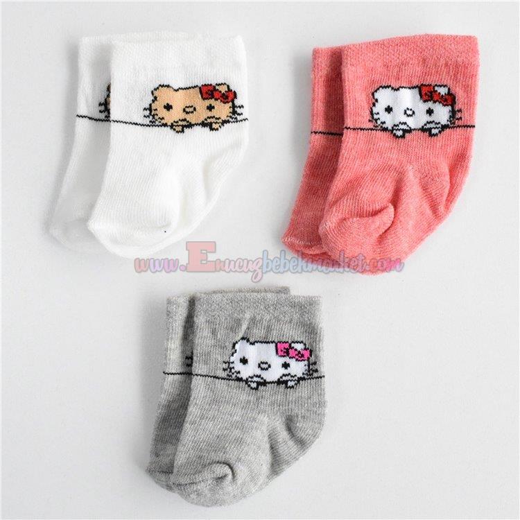 Pandora 0-3 Ay Bebek Çorap Kedi Figürlü Gri Beyaz