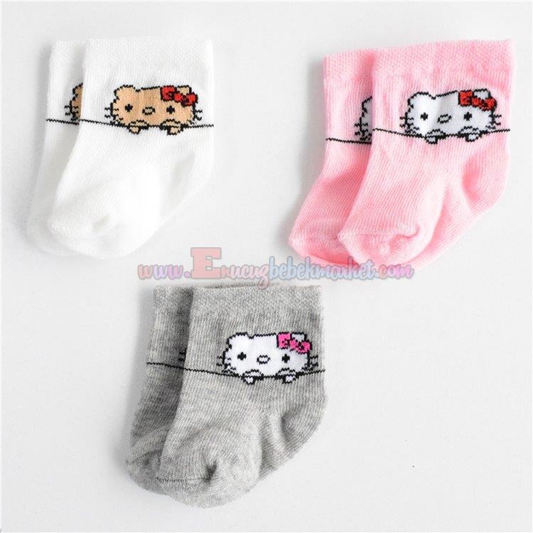 Pandora 0-3 Ay Bebek Çorap Kedi Figürlü Gri Pembe