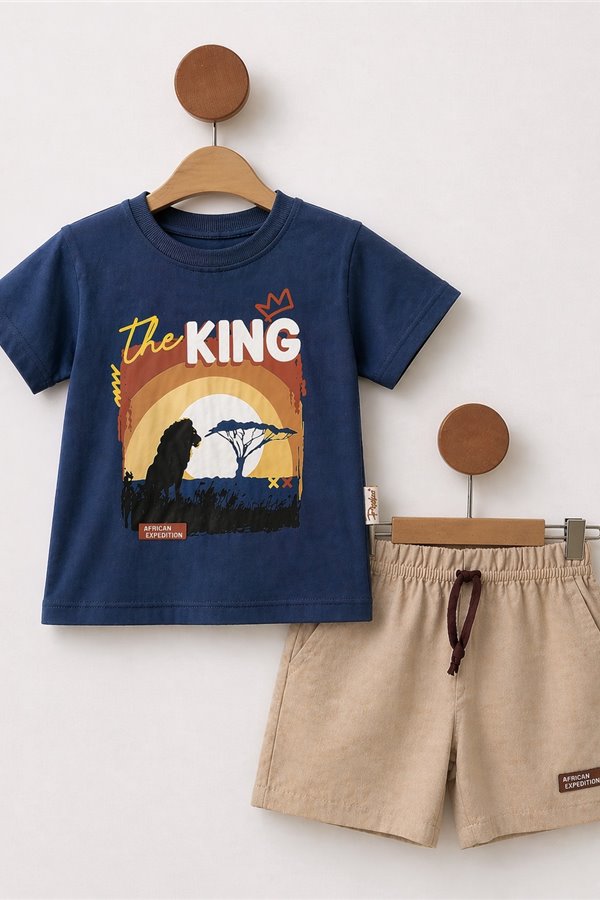 Pepelino 3-4-5-6 Yaş King Baskılı Erkek Çocuk Takım Kahverengi