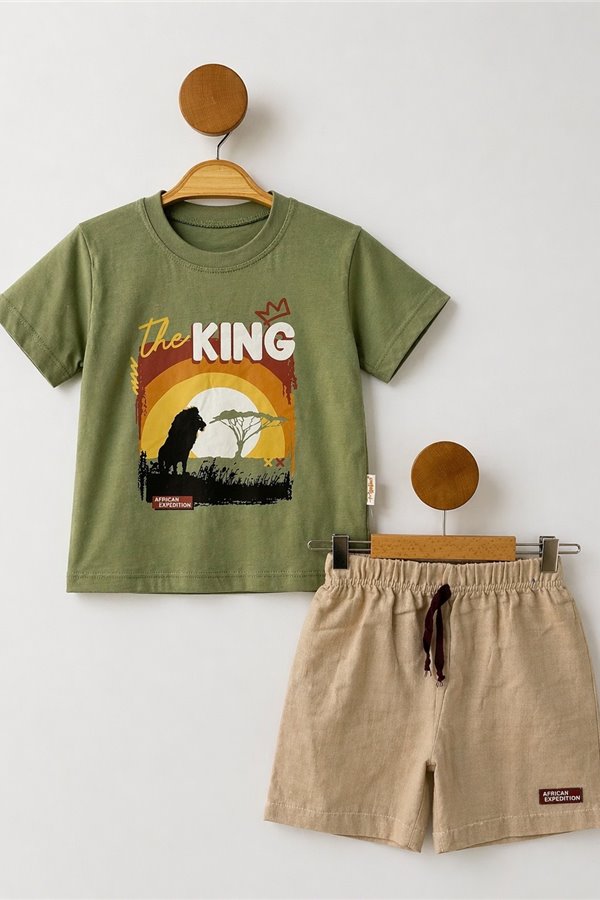 2-9 Yaş Yazlık Erkek Çocuk Takım Dino Baskılı Bej