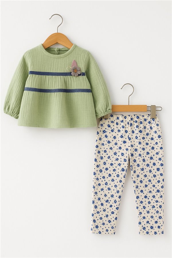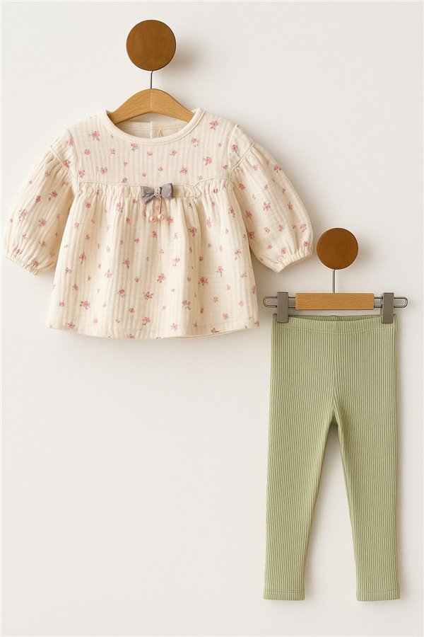 Pepelino 3-6 Yaş Çiçekli Müslin Kız Çocuk Takım Krem Yeşil