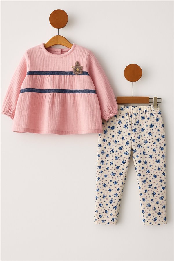 Pepelino 3-6 Yaş Kışlık 3 İplik Kız Çocuk Takım Botanic Pudra