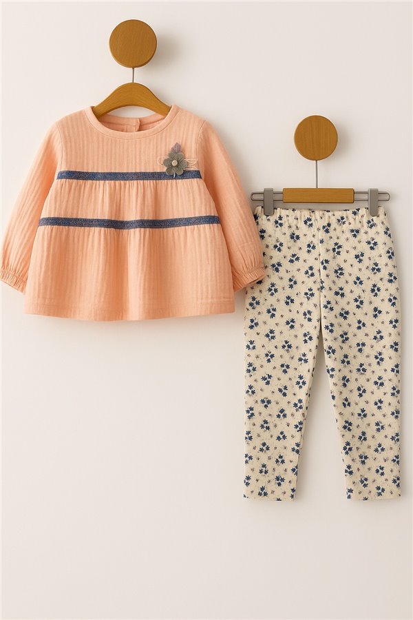 Pepelino 3-6 Yaş Şeritli Müslin Kız Çocuk Takım Somon