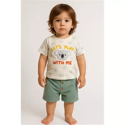 Blkn 6-24 Ay Boy Animal Baskılı Erkek Bebek Takım Yeşil