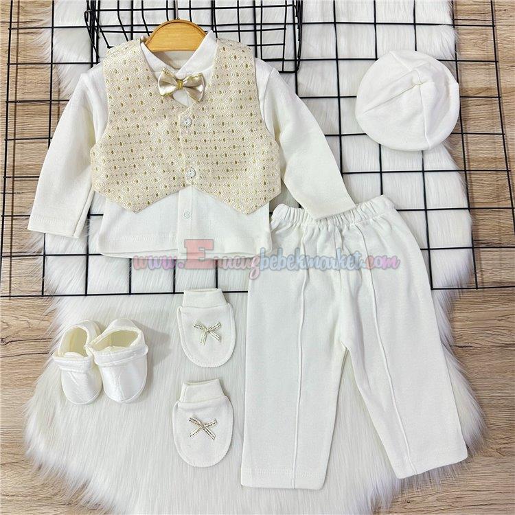 Pinky Dolls 0-3 Ay Erkek Bebek Mevlüt Takımı Kod 1003 Krem