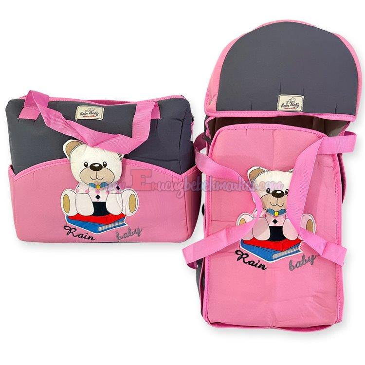 Rain Baby Ana Kucağı Çanta İkili Set Ayıcık Gri Pembe