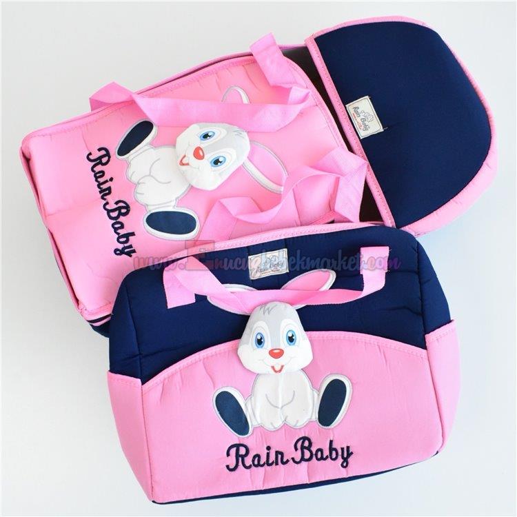 Rain Baby Ana Kucağı Çanta İkili Set Lacivert Pembe