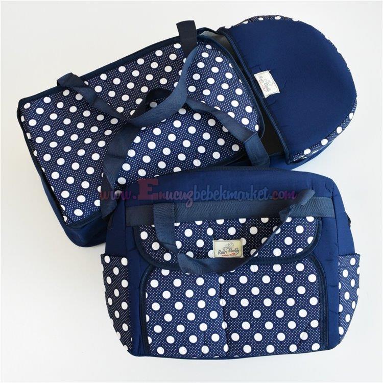 Rain Baby Ana Kucağı Çanta İkili Set Puanlı Lacivert