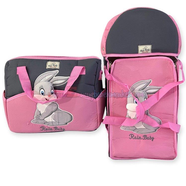 Rain Baby Ana Kucağı Çanta İkili Set Tavşan Gri Pembe