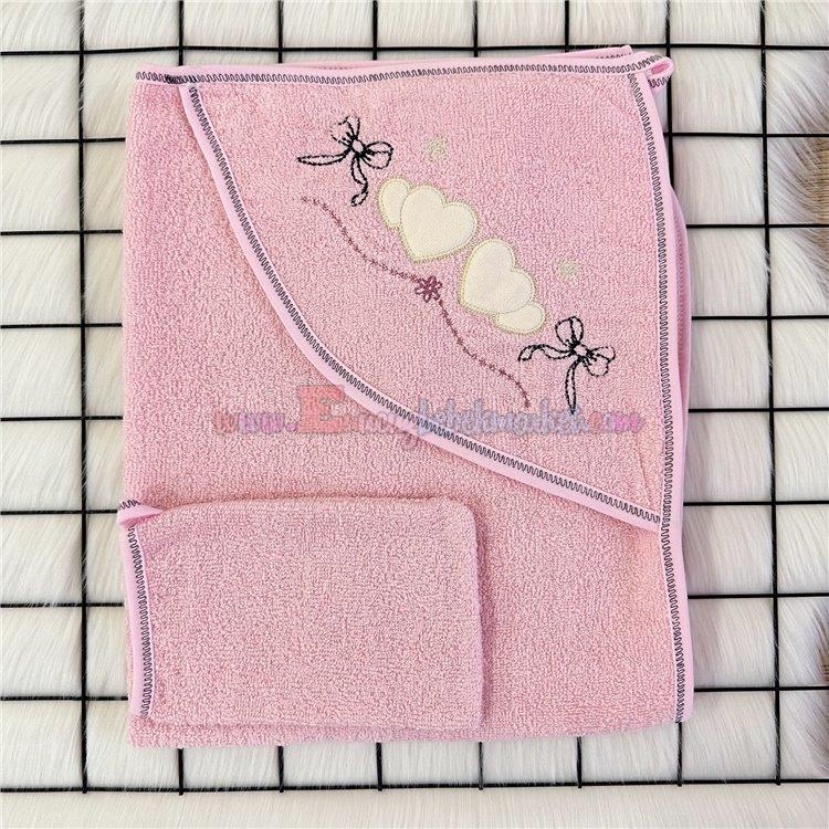 Rano Baby 75X75 Cm Bebek Banyo Havlusu Kalp Nakışlı B. Pembe