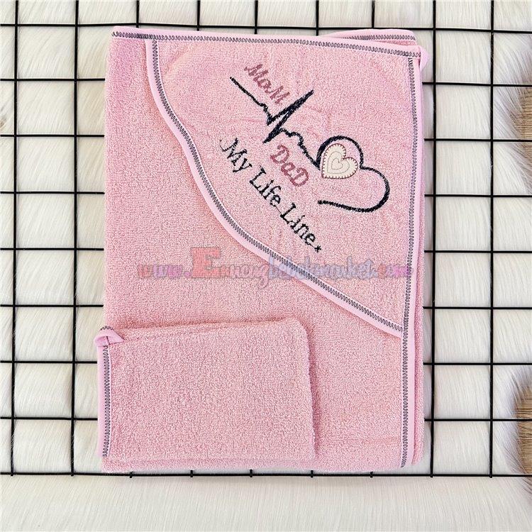Rano Baby 75X75 Cm Bebek Banyo Havlusu Mom Dad Nakışlı Pembe