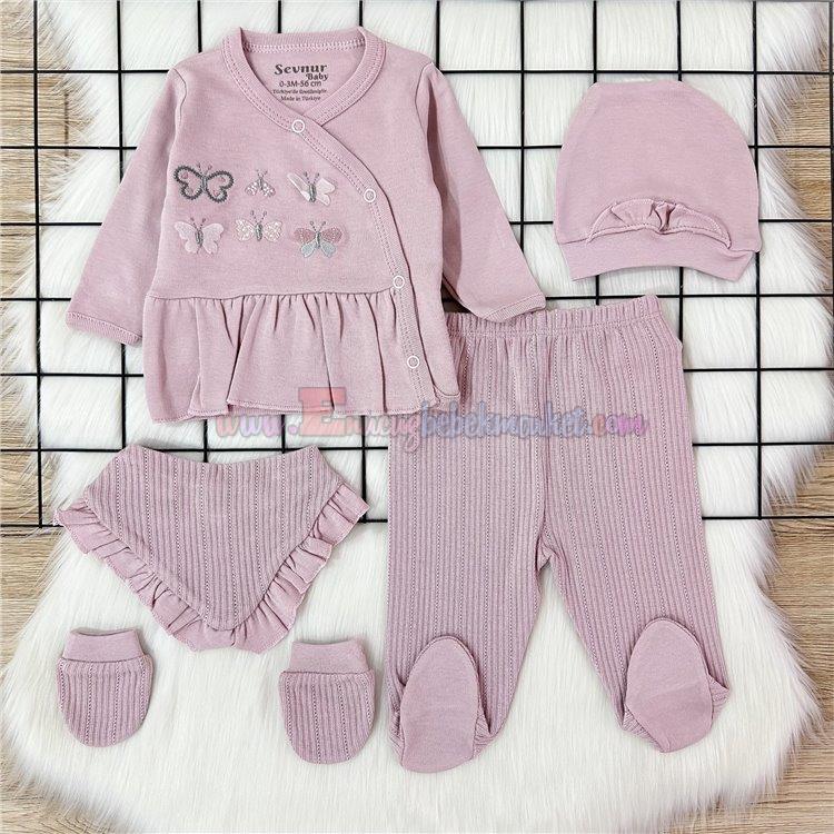Sevnur 0-3 Ay Kelebekli Kız Bebek 5'Li Zıbın Seti Lila