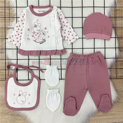 Sevnur Baby 0-3 Ay Atlı Tavşan 5'Li Zıbın Takım Mürdüm