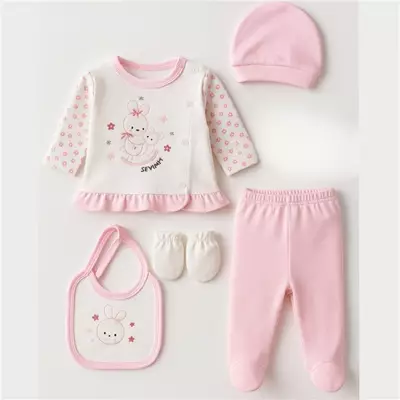 Sevnur Baby 0-3 Ay Atlı Tavşan 5'Li Zıbın Takım Pembe