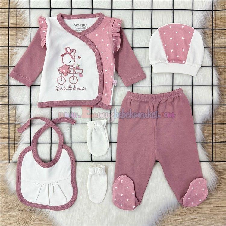 Sevnur Baby 0-3 Ay Bisikletli Tavşan 5'Li Zıbın Takım Mürdüm