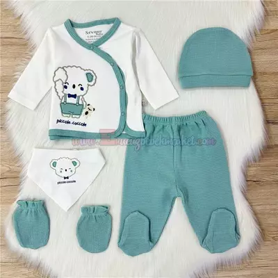 Sevnur Baby 0-3 Ay Koala Nakışlı 5'Li Zıbın Takım Yeşil