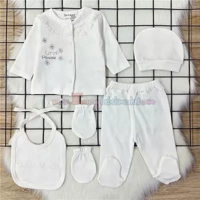 Sevnur Baby 0-3 Ay Princess 5'Li Zıbın Takım Ekru