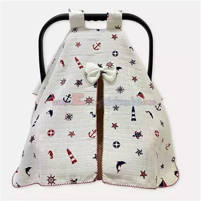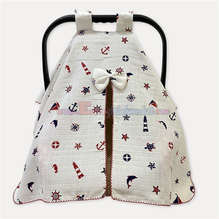 Sleepy Baby Puset Örtüsü Denizci Desenli Kırmızı Lacivert