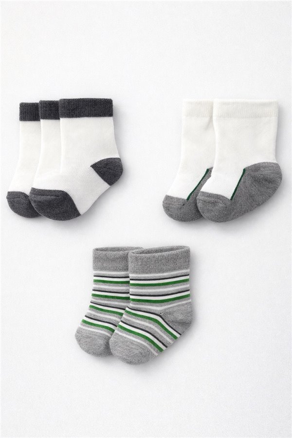 Fındık Bebe 0-3 Ay 3'Lü Bebek Çorap Kız Desen Gri Krem