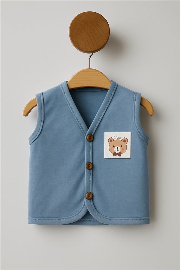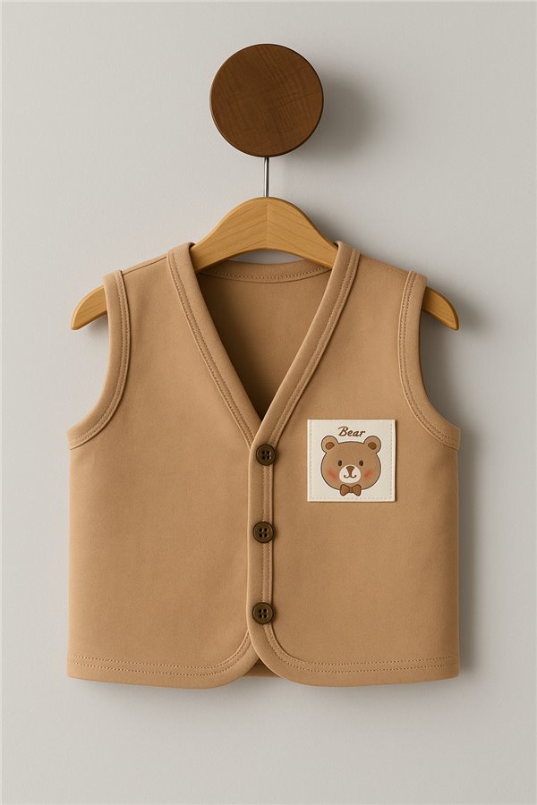 Ayıcık Armalı Düğmeli Bebek Yelek