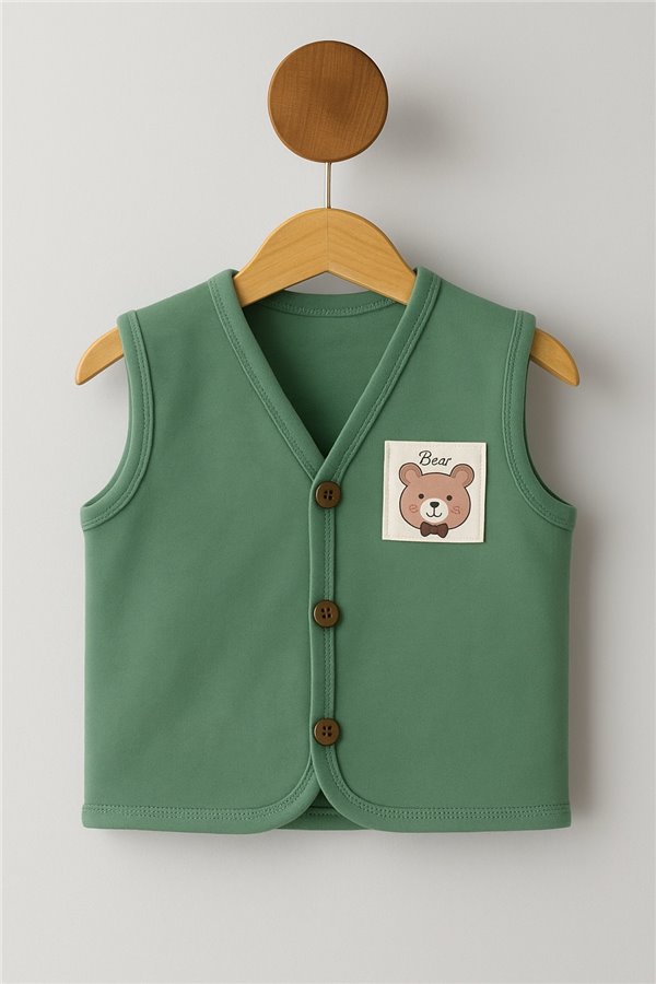 Toyis 3-24 Ay Ayıcık Armalı Penye Bebek Yelek Yeşil