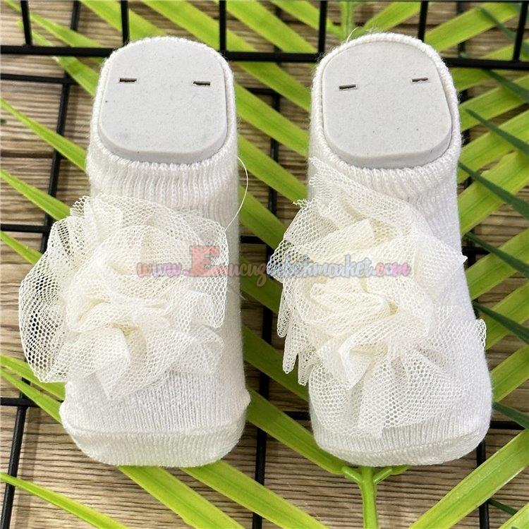 Viki Baby 0-6 Ay Penye Çiçekli Bebek Çorap Krem