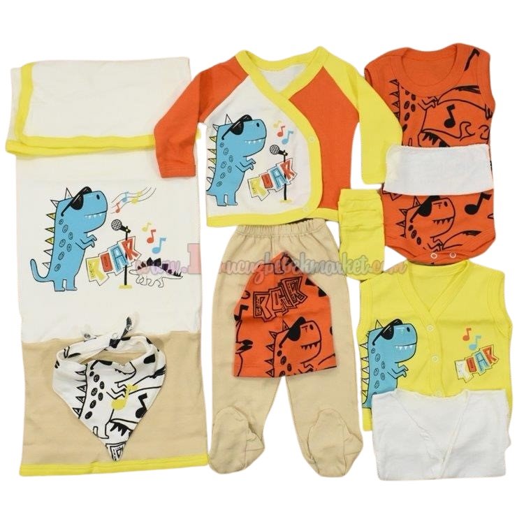 Wiwa 0-3 Ay 10 Parça Bebek Zıbın Seti Dino Baskılı Turuncu