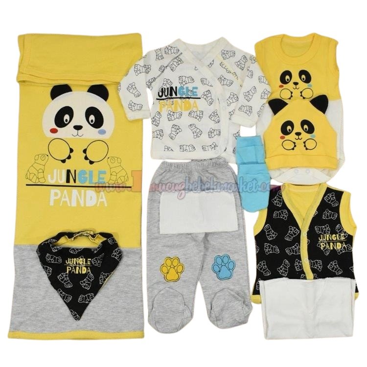Wiwa 0-3 Ay 10 Parça Bebek Zıbın Seti Panda Baskılı Sarı