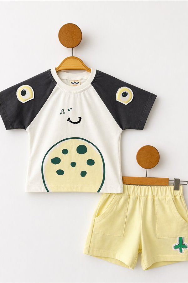 Wow 6-24 Ay Baskılı Waffle Şortlu Bebek Takım Füme