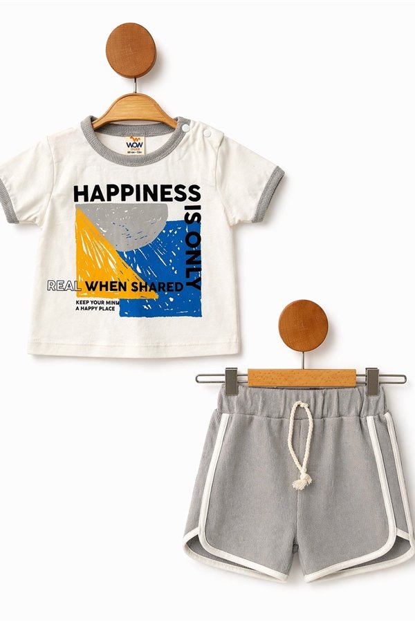 Wow 6-24 Ay Baskılı Waffle Şortlu Bebek Takım Füme