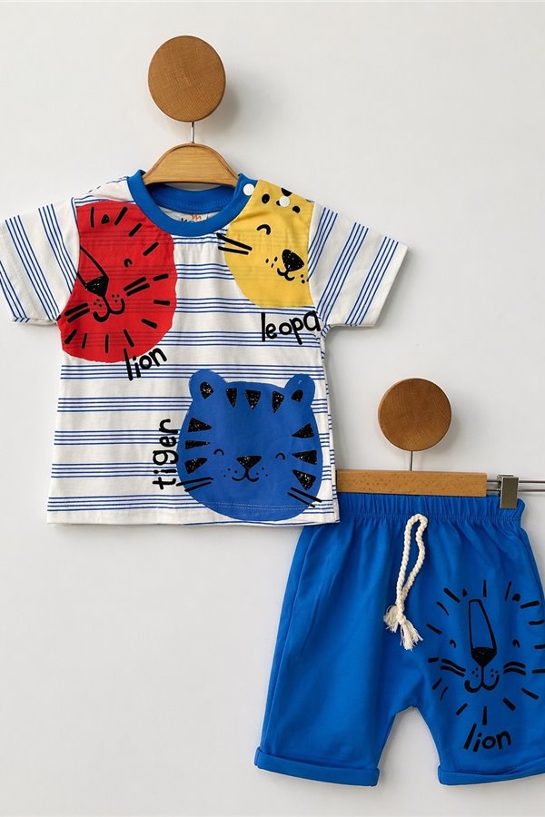 Wow 6-24 Ay Lion Baskılı Şortlu Bebek Takım Kırmızı