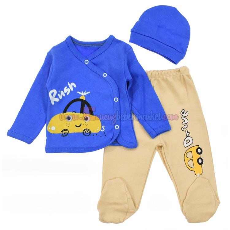 Zem Baby 0-3 Ay 3 Parça Zıbın Takım Arabalı Mavi