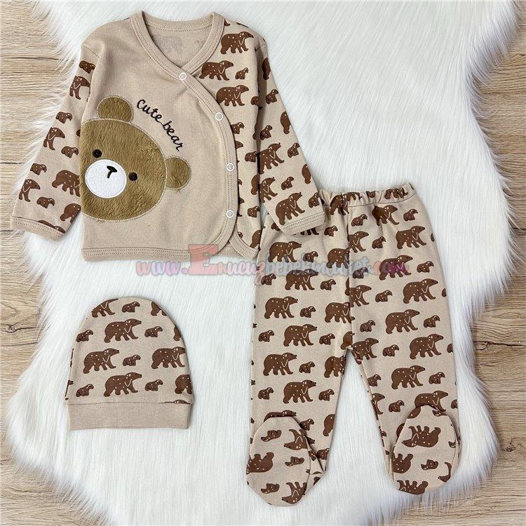 Zem Baby 0-3 Ay 3 Parça Zıbın Takım Ayıcık Nakışlı Kahverengi