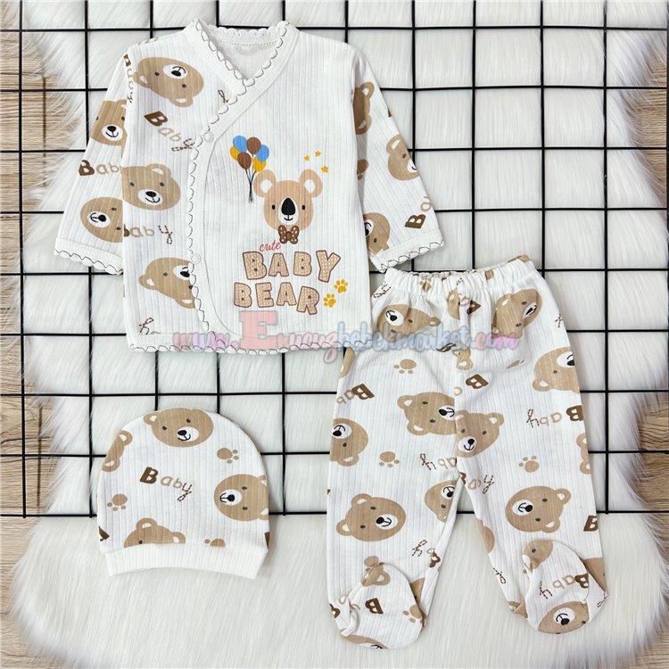 Zem Baby 0-3 Ay 3 Parça Zıbın Takım Bear Baskılı Bej