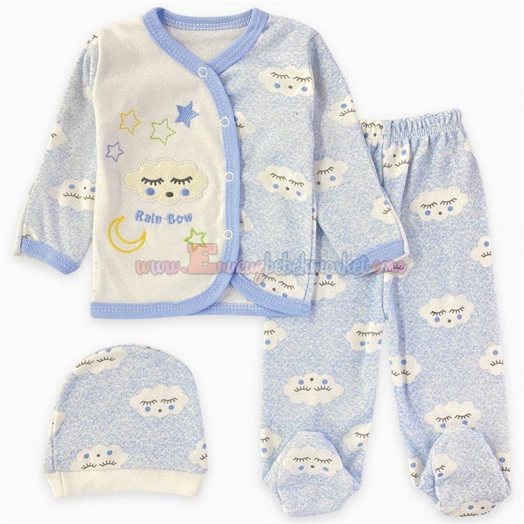 Zem Baby 0-3 Ay 3 Parça Zıbın Takım Bulutlu Mavi
