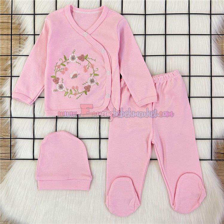Zem Baby 0-3 Ay 3 Parça Zıbın Takım Çiçek Nakışlı Pembe