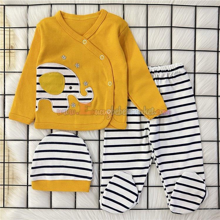 Zem Baby 0-3 Ay 3 Parça Zıbın Takım Fil Nakışlı Sarı