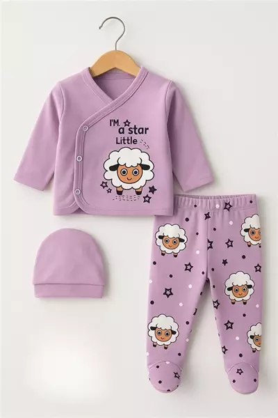 Zem Baby 0-3 Ay 3 Parça Zıbın Takım Kuzu Lila