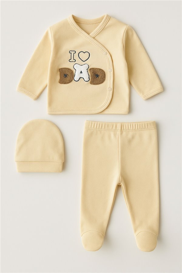 Zem Baby 0-3 Ay 3 Parça Zıbın Takım Love Dad Bej