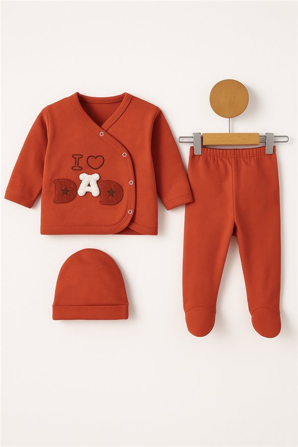 Zem Baby 0-3 Ay 3 Parça Zıbın Takım Love Dad Kiremit