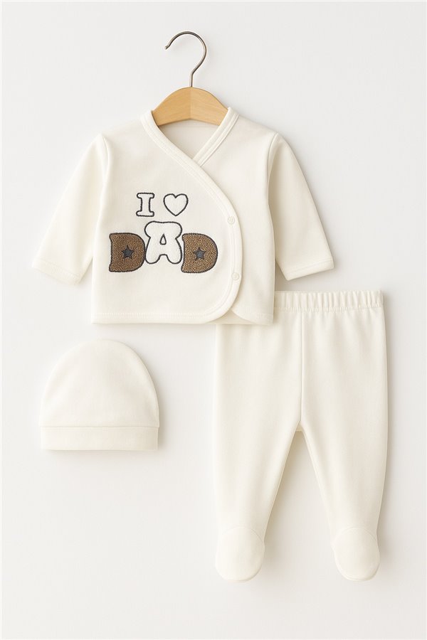 Zem Baby 0-3 Ay 3 Parça Zıbın Takım Love Dad Krem