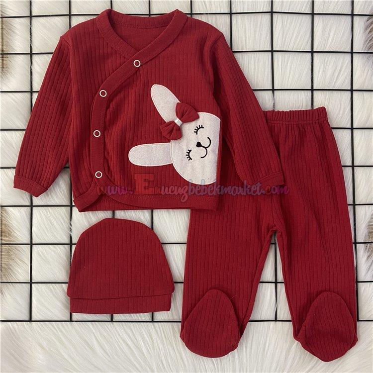 Zem Baby 0-3 Ay 3 Parça Zıbın Takım Tavşan Kırmızı