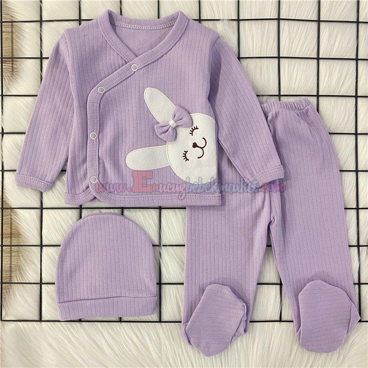 Zem Baby 0-3 Ay 3 Parça Zıbın Takım Tavşan Lila