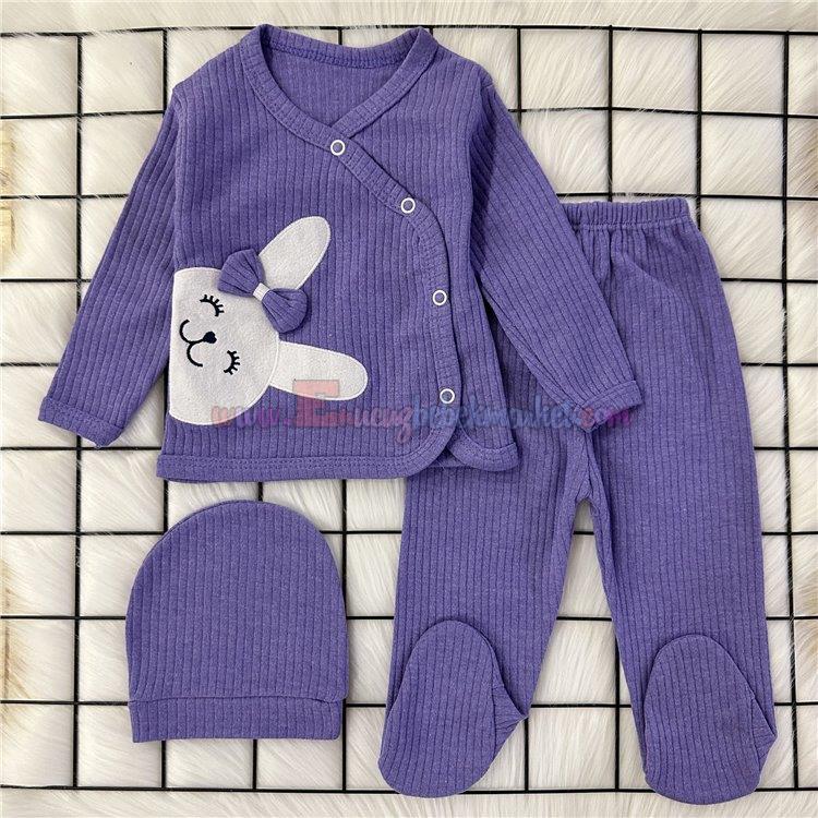 Zem Baby 0-3 Ay 3 Parça Zıbın Takım Tavşan Mor