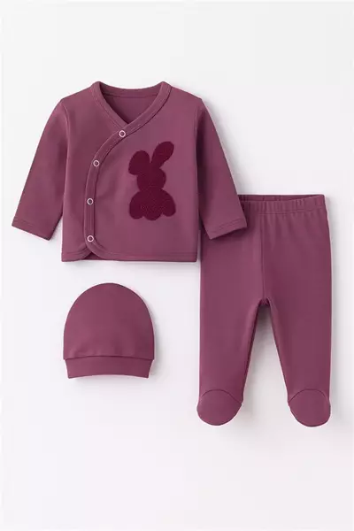 Zem Baby 0-3 Ay 3 Parça Zıbın Takım Tavşan Mürdüm