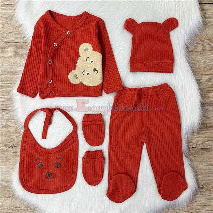 Zem Baby 0-3 Ay 5 Parça Zıbın Takım Ayı Nakışlı Kiremit