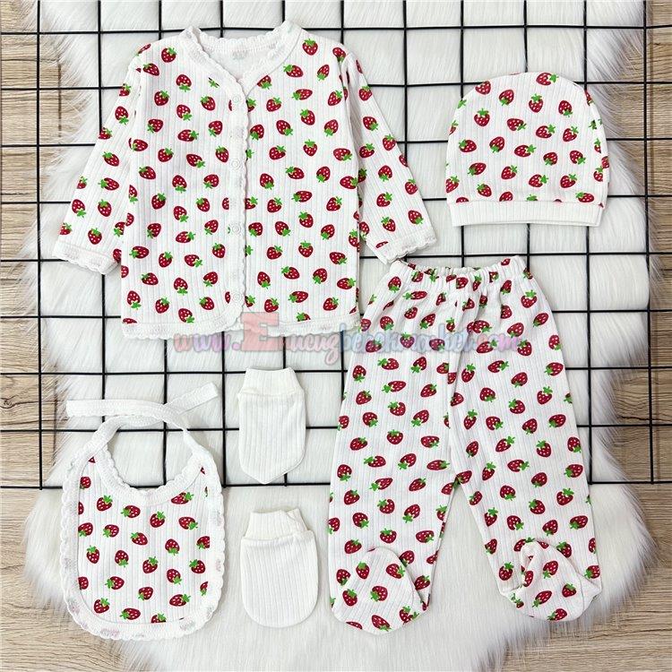 Zem Baby 0-3 Ay 5 Parça Zıbın Takım Çilek Desenli Krem
